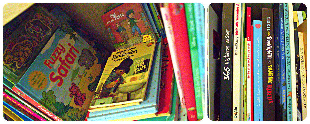 Through the years, we have built a home library of children books, combining all the languages that are, or will be, part of our children’s lives. There are classic children stories in Slovene, which I and Marko used to read through our childhoods, encyclopaedia-style books in French, some English specimens and the random book in either German, Luxembourgish or Italian.