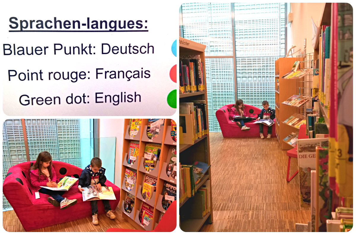 The fact that we have an amazing public library, means we don’t have to stack up on much else since it fulfills all our reading needs in French, German, Luxembourgish, and English. Although located right in the city centre, it took me a few years of living here to discover it, thanks to my good friend Maja, whose love for books exceeds my own. A library card for myself and Mia was ordered immediately and once he was born, Jakob got one as well at the ripe age of two months. The building itself is quite peculiar with the entrance on the ground floor and two more floors filled with books below that one. What my children used to love when smaller, and are still sometimes mesmerized by, is the pond in the middle of the building; they would just sit there at the window, staring at goldfish, giving me ample time to choose my own reading material to last me until our next visit.
