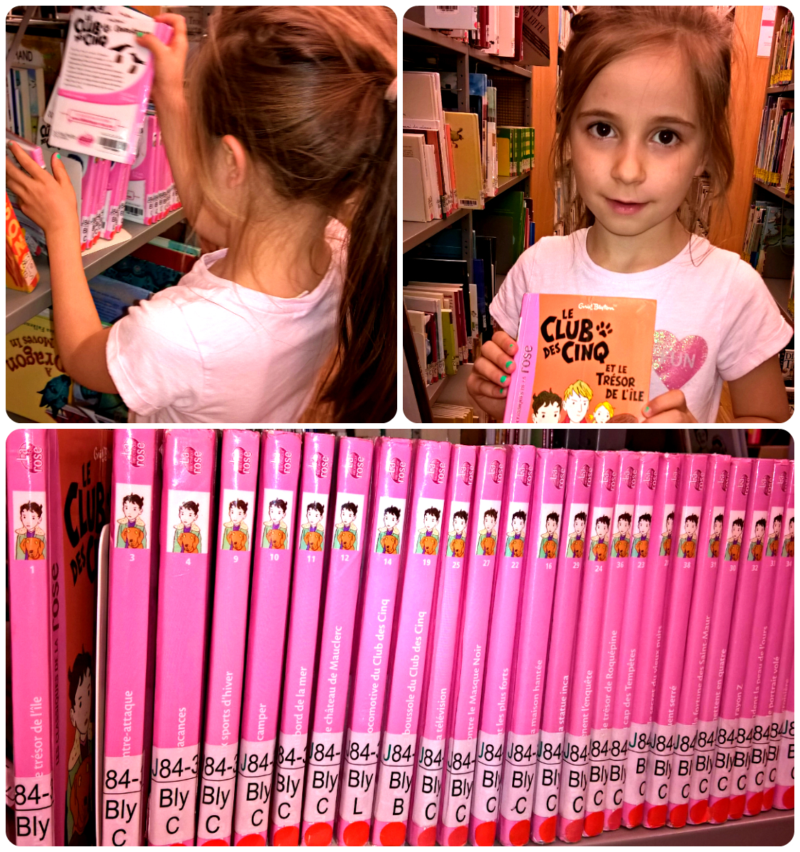 And this is the usual mishmash of different-language books we bring home. Both my offsprings love first choosing them, and once home, browsing through, reading, asking questions about what they’ve discovered in them. On one of our recent visits, we’ve stumbled upon The Famous Five series in French, where Mia got the uncontrollable urge to rearrange the books in the correct order because ˝Look, they are all mixed up! It starts with 22 and ends with 3˝. After choosing a few and bringing them home, it was bizarre owning and comparing the same books, same stories in two different languages – the ones from the library with my childhood books form a few decades ago. A true multilingual moment!