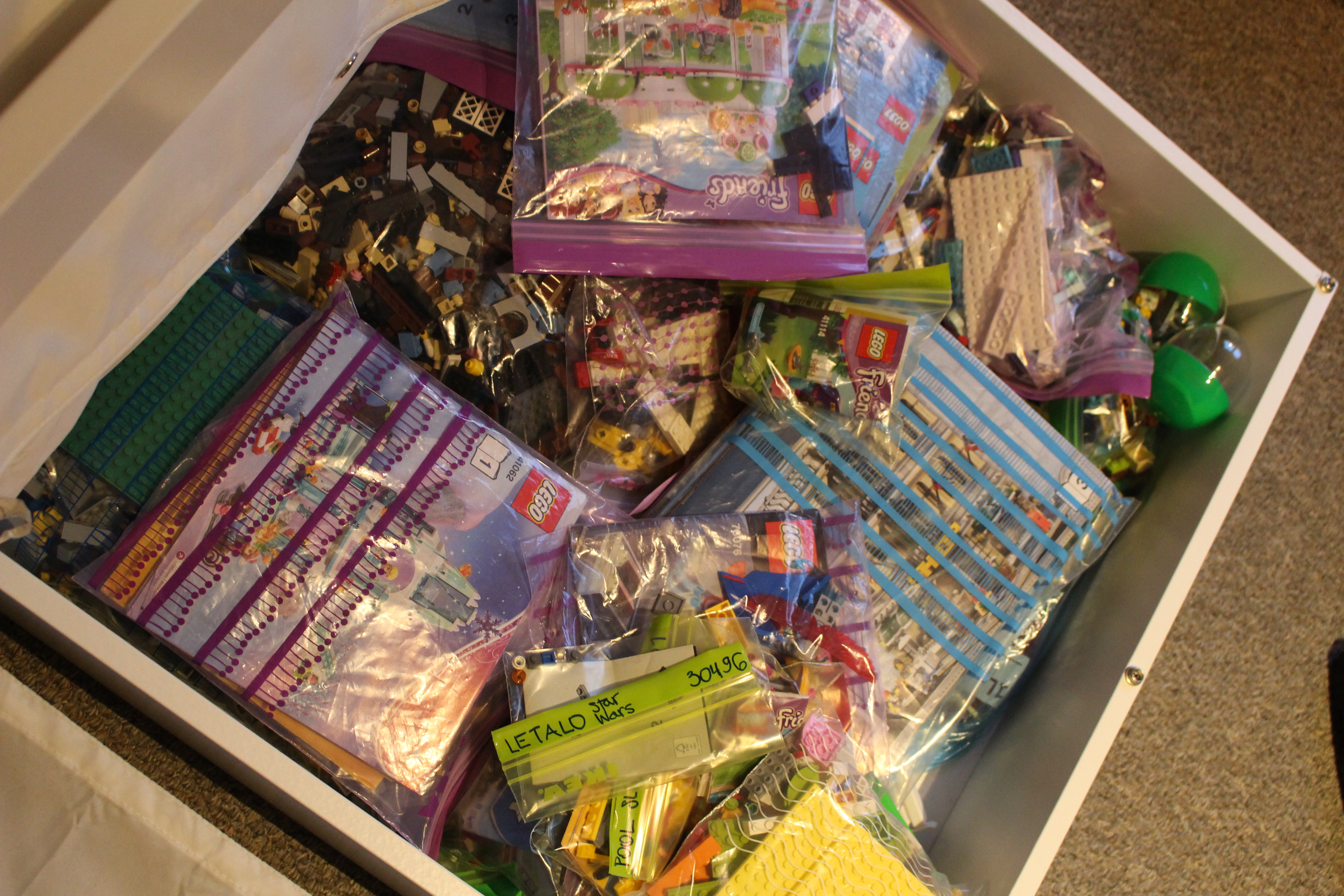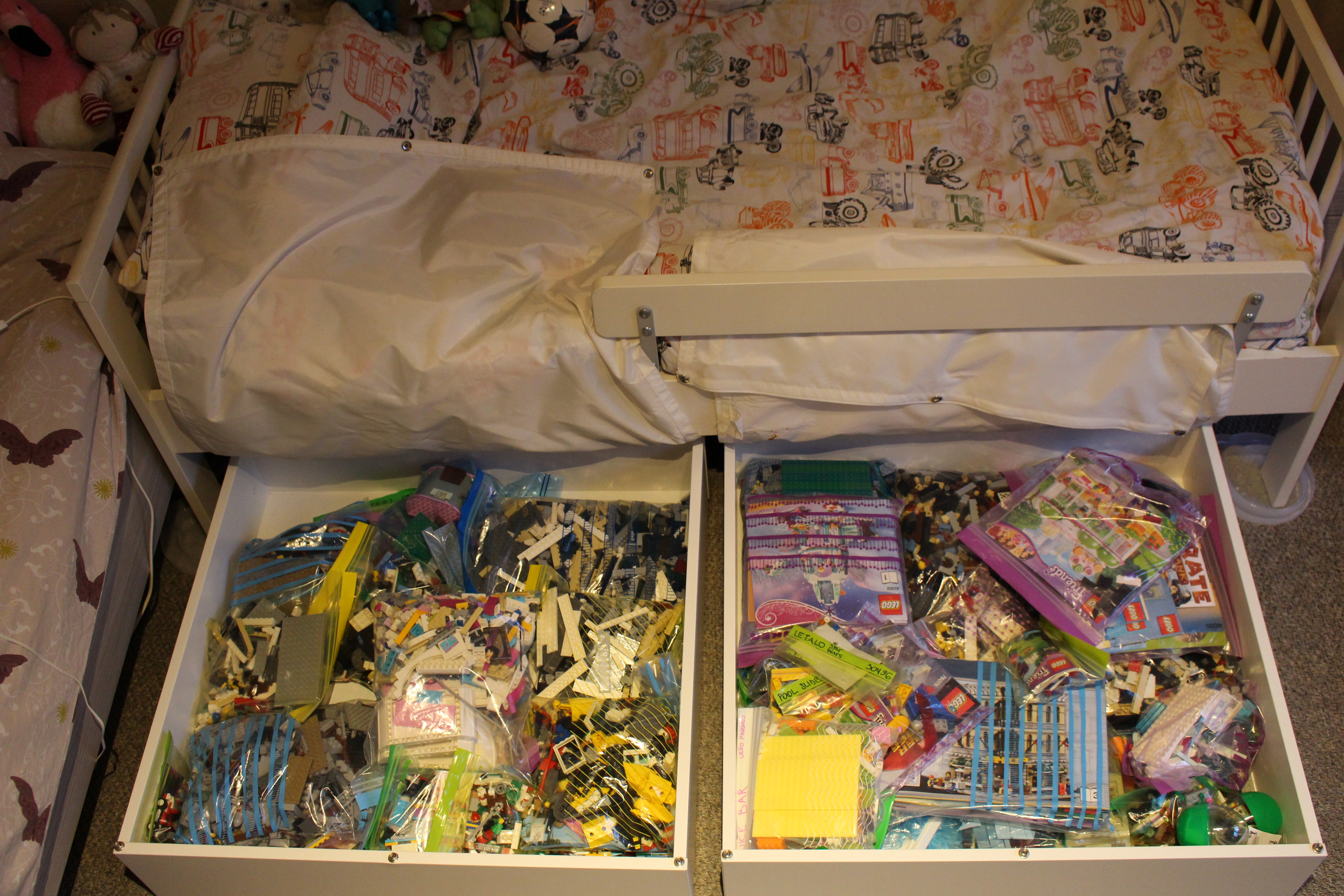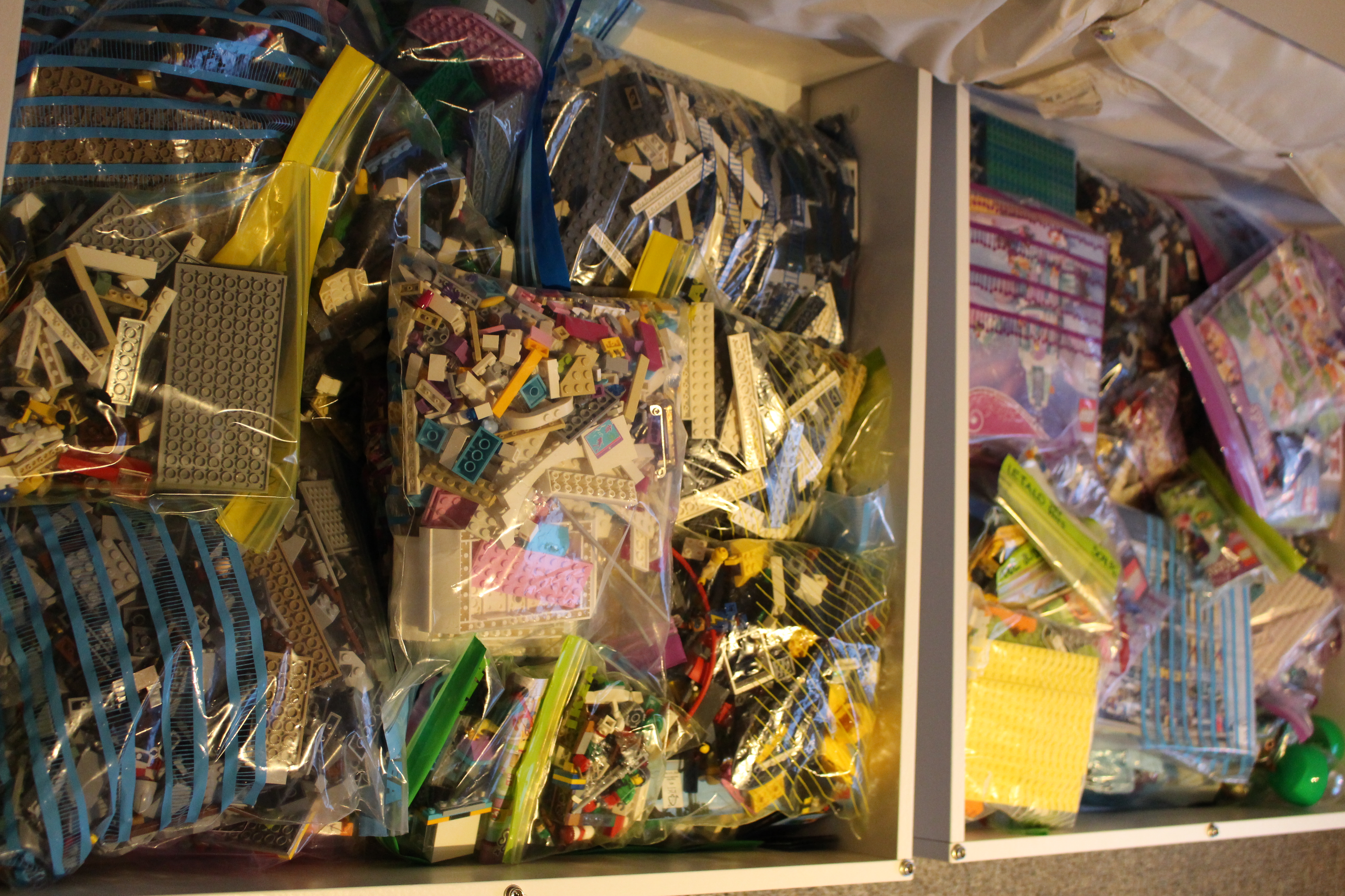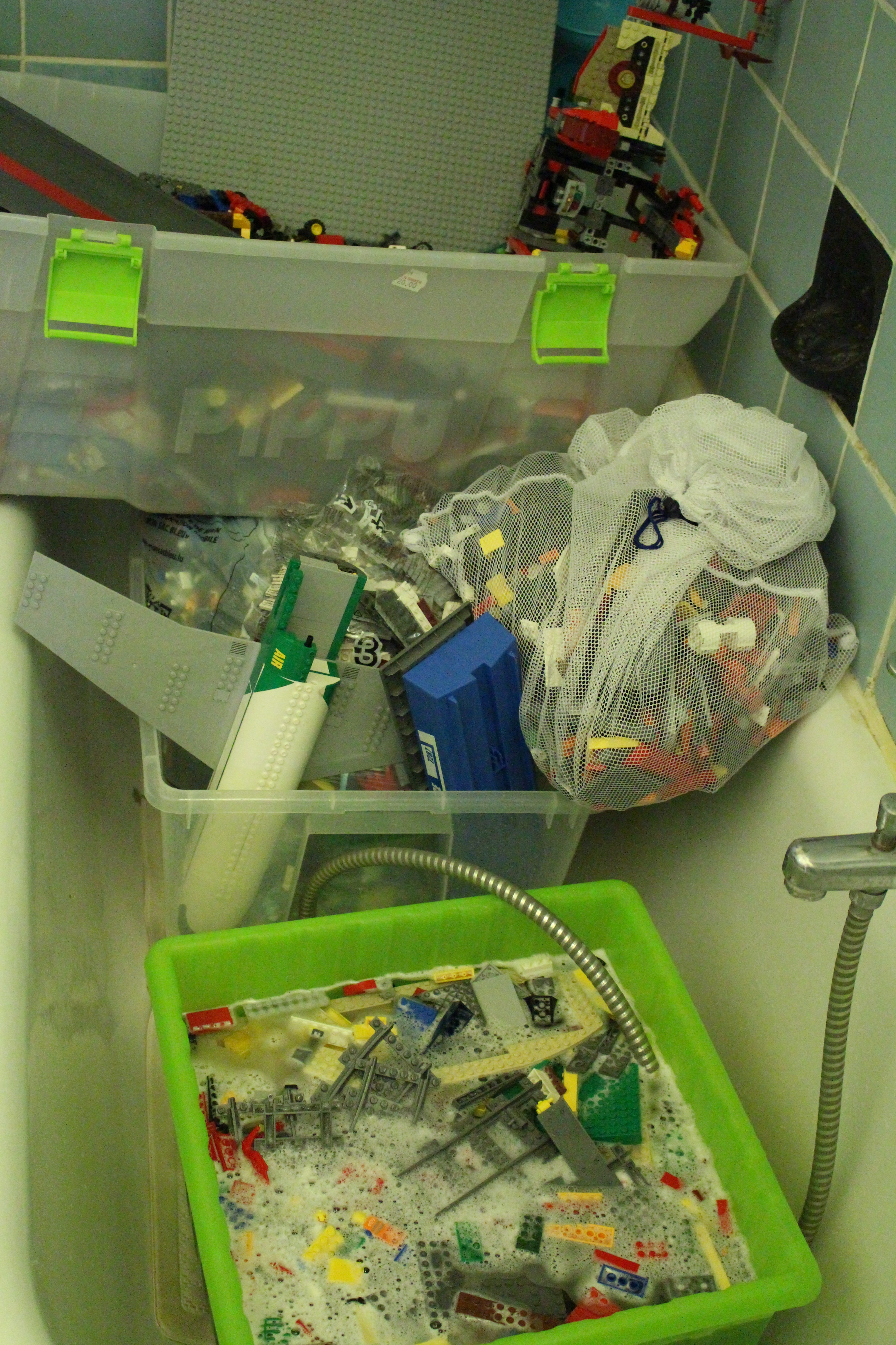 But I deflect; after a few days, all the newly-bought second-hand Lego bricks got moved to the basement and brought back up in smaller batches to be washed, dried and, eventually, assembled. We are finally nearing the end but in the meantime, my bedroom and living room floor is cluttered with big boxes which bottoms are thinly layered with the Danish building blocks. They are drying, I was told.