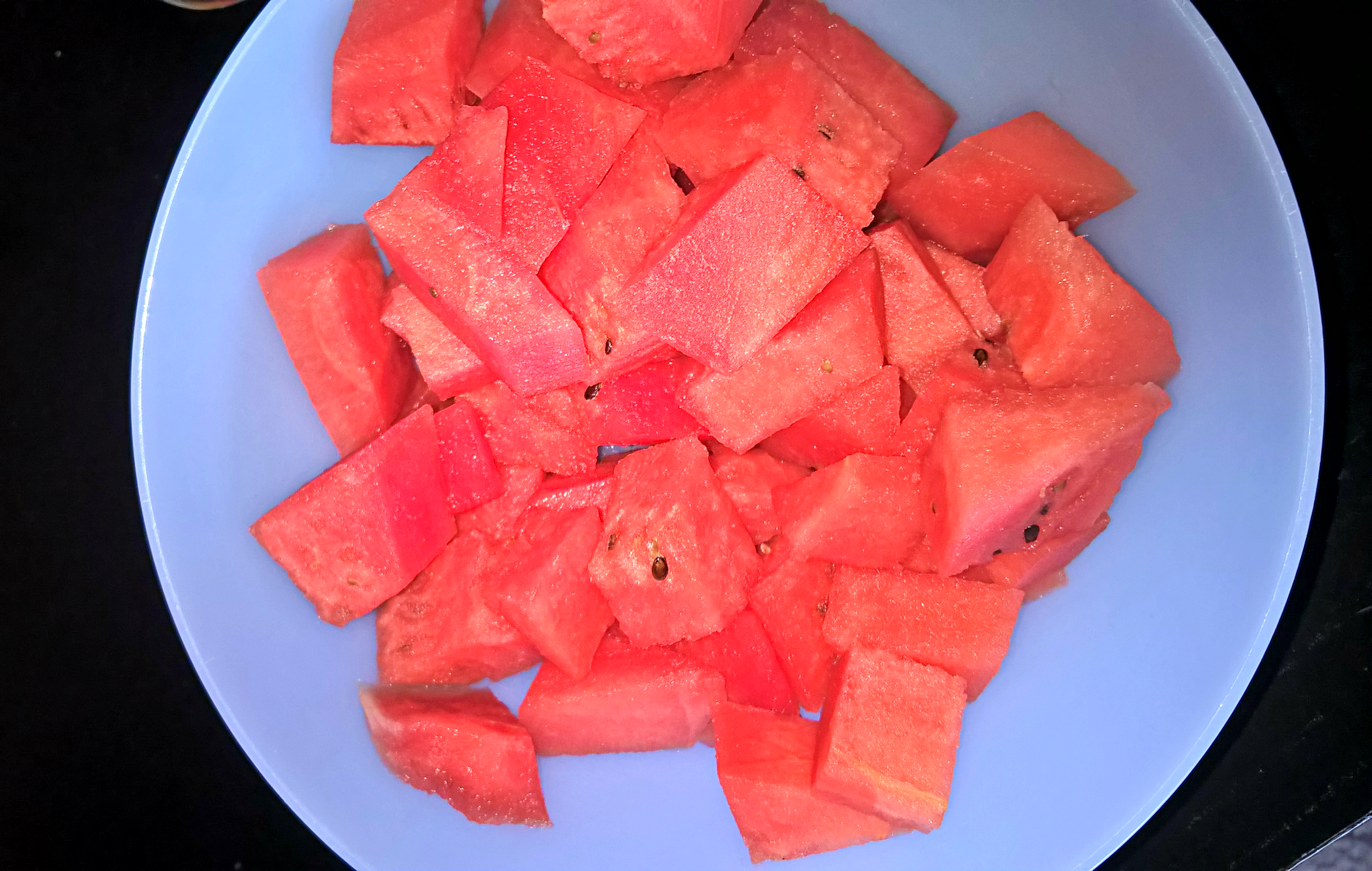 Having served in-season watermelon for the afternoon snack, we have come full circle in our week-worth of meals.